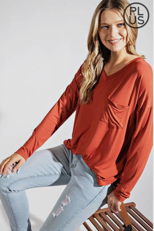 SALE! $15 Cinnabar Plus Long Sleeve V Neck Top with Hi Low Hem