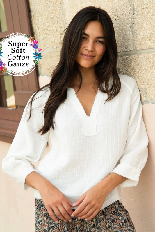 Natural Life Robyn Gauze Top in White