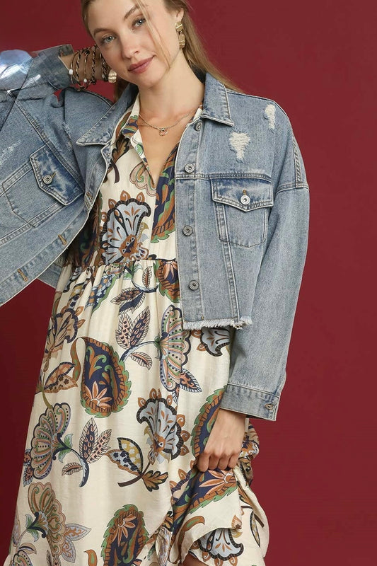 Umgee Cream Boho Print Tiered Midi Dress