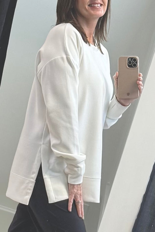 Ivory Buttery Soft High Low Stretch Modal Crewneck Sweatshirt