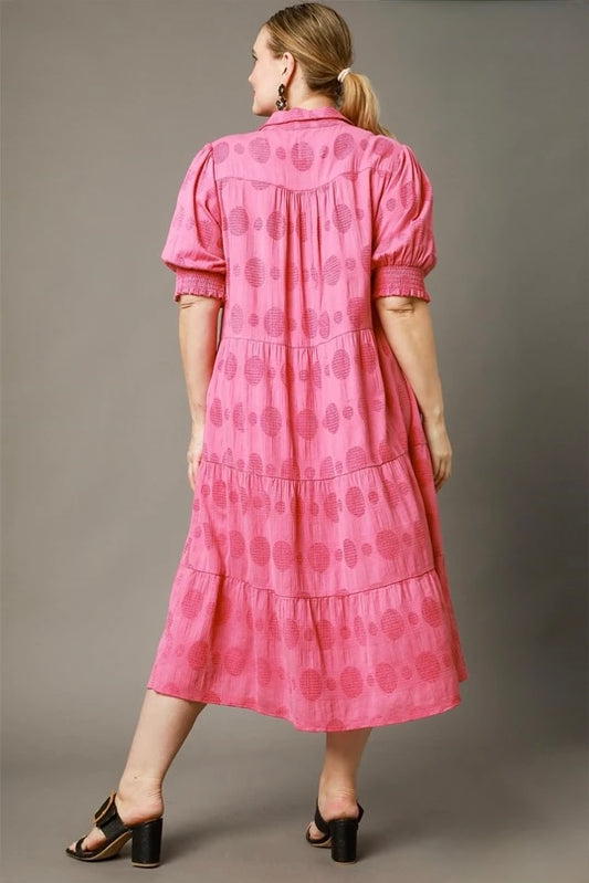 Umgee Rose Pink Swiss Dot Tiered Maxi Dress