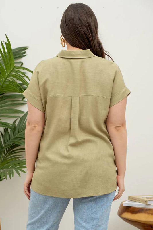 $13 SALE! Olive Green Short Rolled Sleeve Button Up Top REG. $26.99