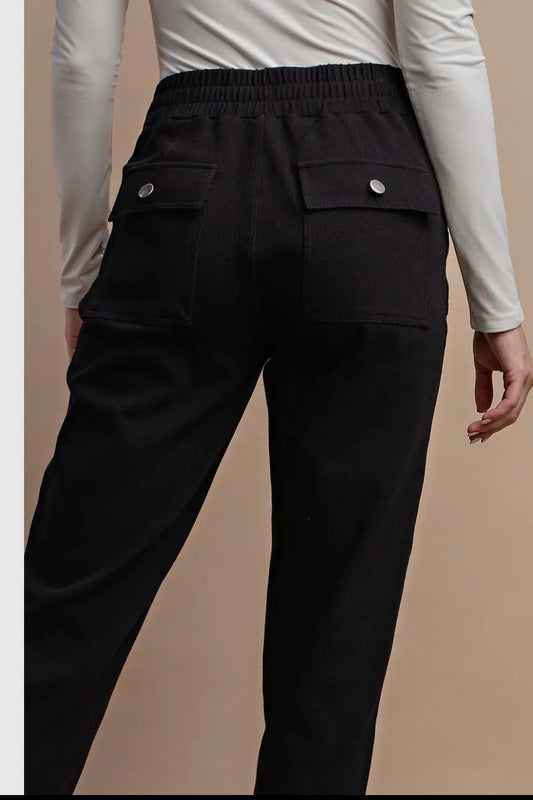 Black Butter Soft High Waist Jogger Pants with Pockets
