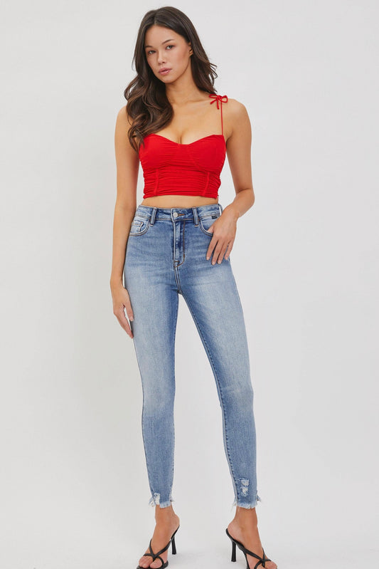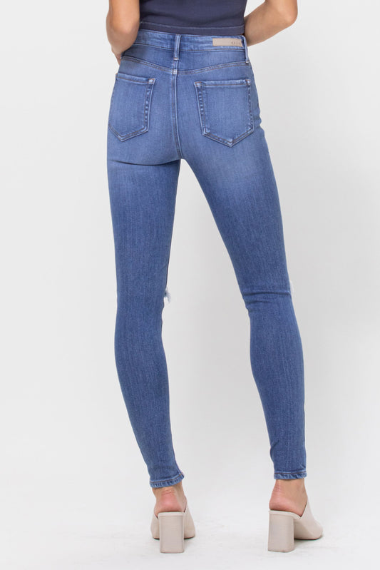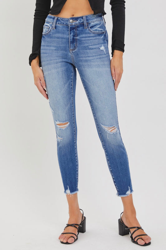 Cello High Rise Distressed Ankle Skinny Jeans in Medium Denim