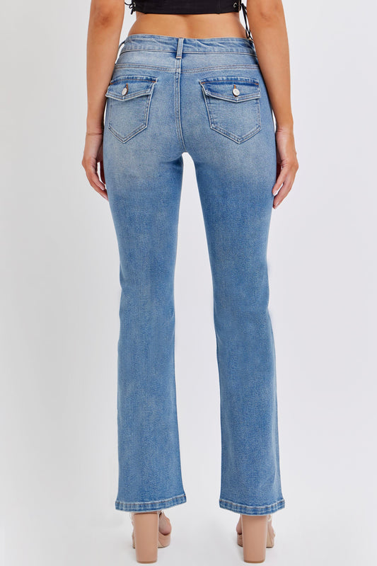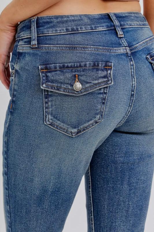 Cello Mid Rise Bootcut Jeans with Button Flap Back Pockets