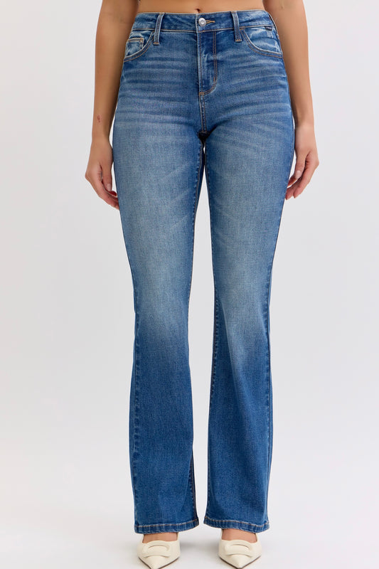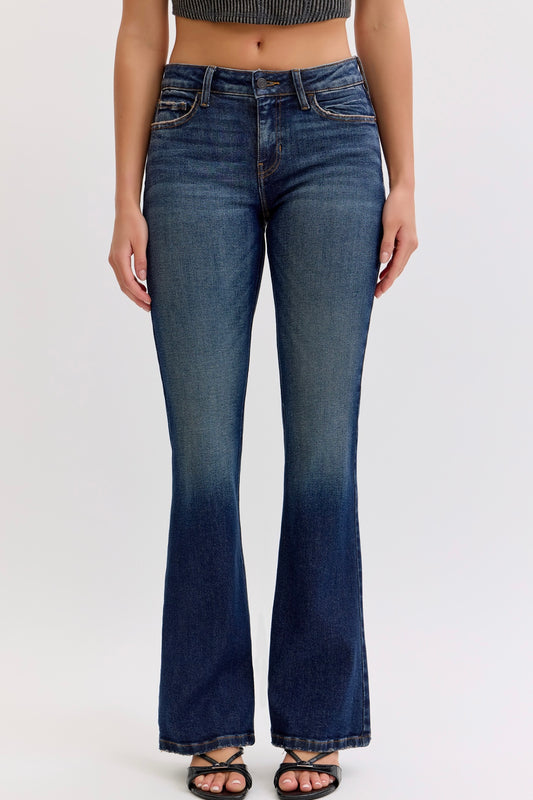 Cello Mid Rise Bootcut Jeans with Button Flap Back Pockets- Dark Tint