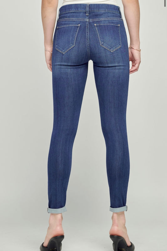 Cello Medium Denim Mid Rise Pull On Cropped Skinny with Rolled Hem