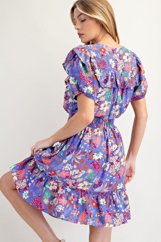 Easel Lavender Floral Dress with Pockets