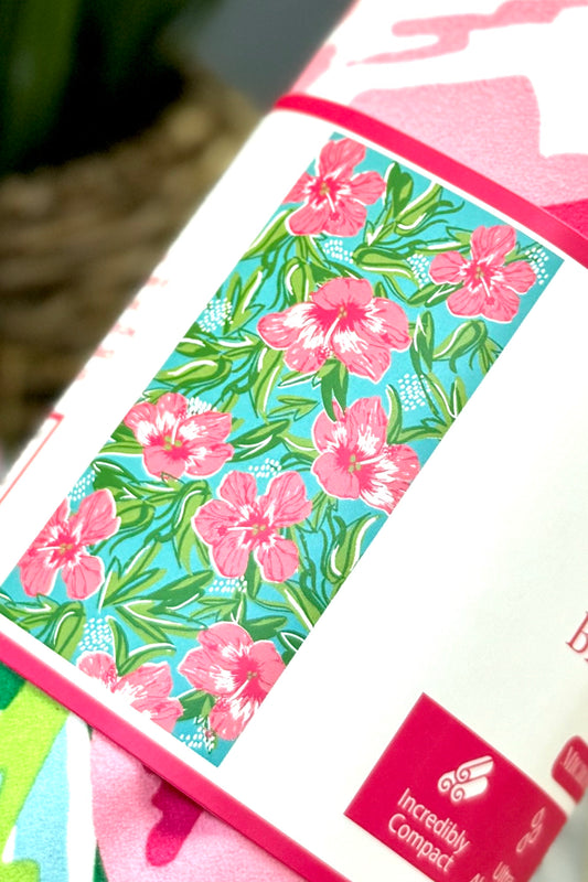Hibiscus Flower Microfiber Beach Towel in Aruba Blue, Hot Pink, Multi