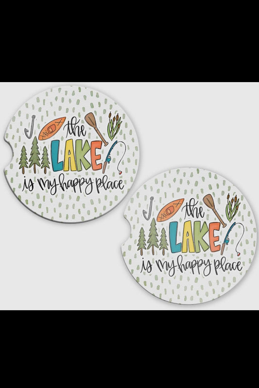 Lake is My Happy Place Car Coaster Set of 2