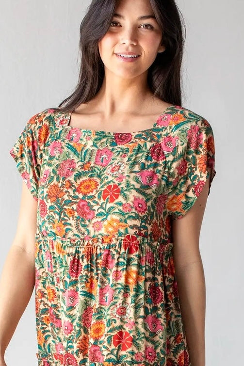 Natural Life Becca Short Dress- Pink Floral Border