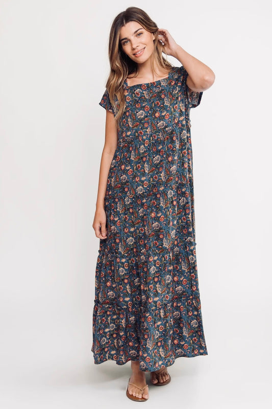 Natural Life Berkley Maxi Dress in Blue Tan Floral