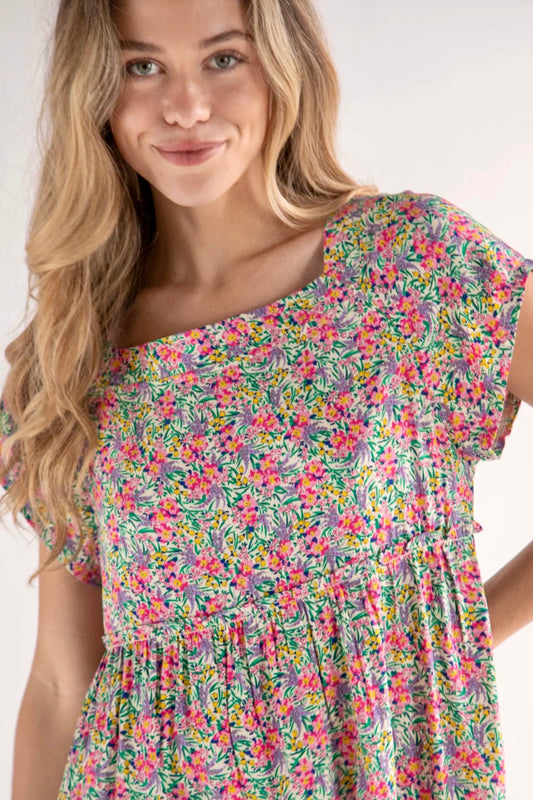Natural Life Berkley Short Dress Ditsy Neon Floral