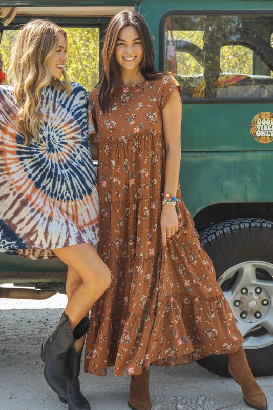 Natural Life Berkley Maxi Dress in Brown Bouquet