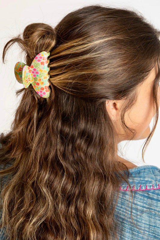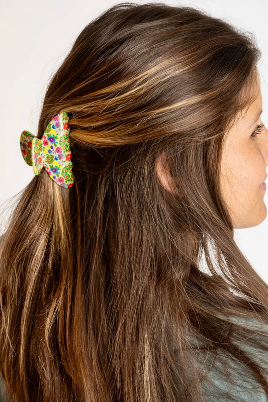 Natural Life Flora Claw Clips- set of 3 Cream Mustard Coral Floral