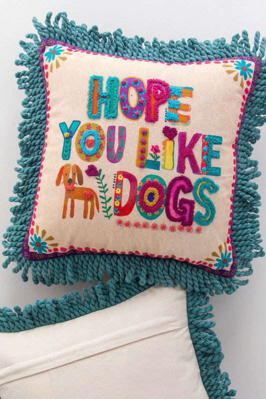 Natural Life Tufted Boho Pillow- Hope You Like Dogs