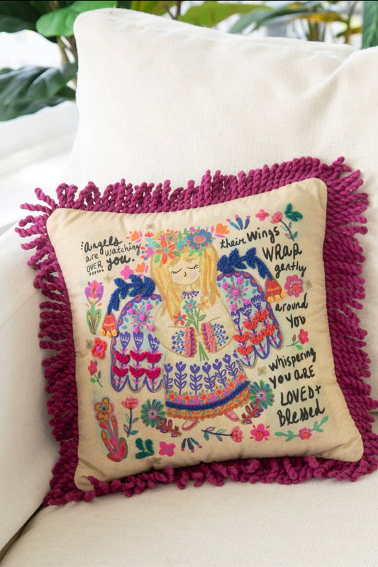 Natural Life Tufted Boho Pillow- Angels Are Watching Over You