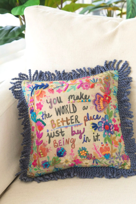 Natural Life Tufted Boho Pillow- You Make the World a Better Place