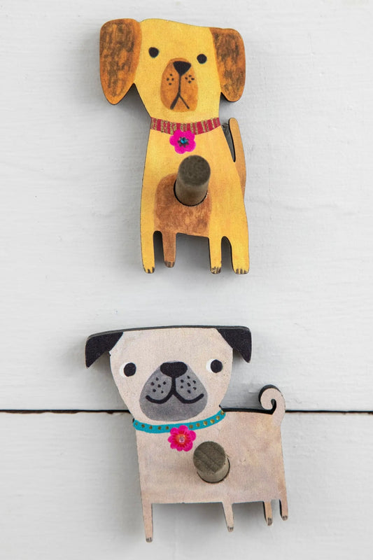 Natural Life Wooden Dog Wall Hooks, Set of 2
