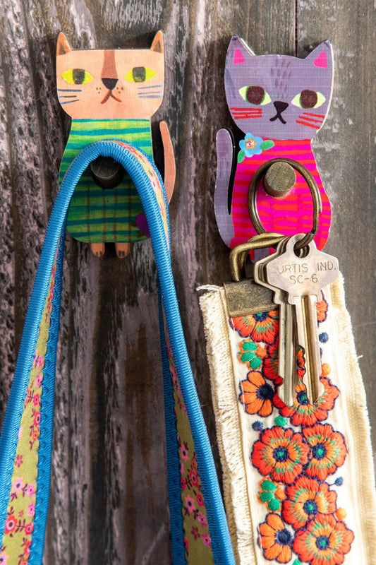Natural Life Wooden Cat Wall Hooks, Set of 2