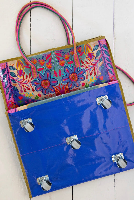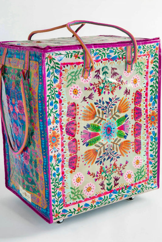Natural Life XL Rolling Tote Bag - Royal Blue Folk Flower