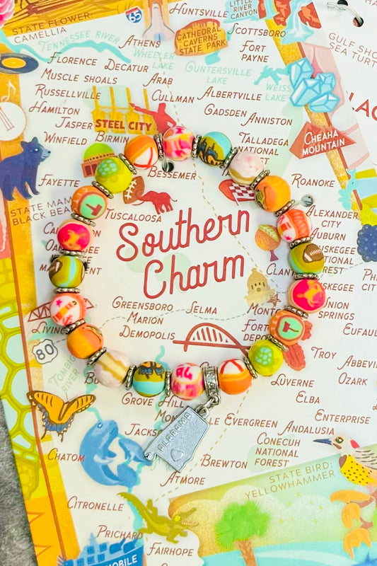 Alabama Clay Beaded Bracelet with State Charm by Jilzarah