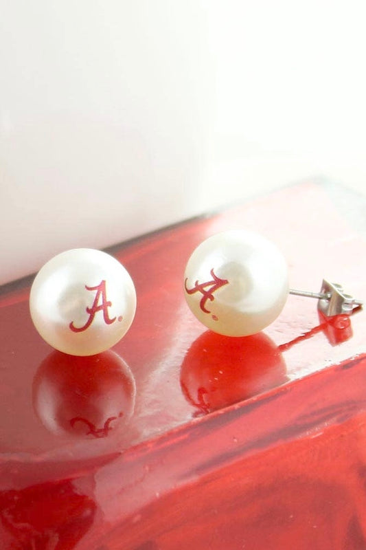 Alabama Pearl & Crystal Stretch Bracelet w/ Crystal Logo