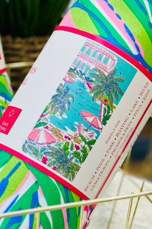 Resort Shores Microfiber Beach Towel in Aruba Blue, Kelly Green, and Pink
