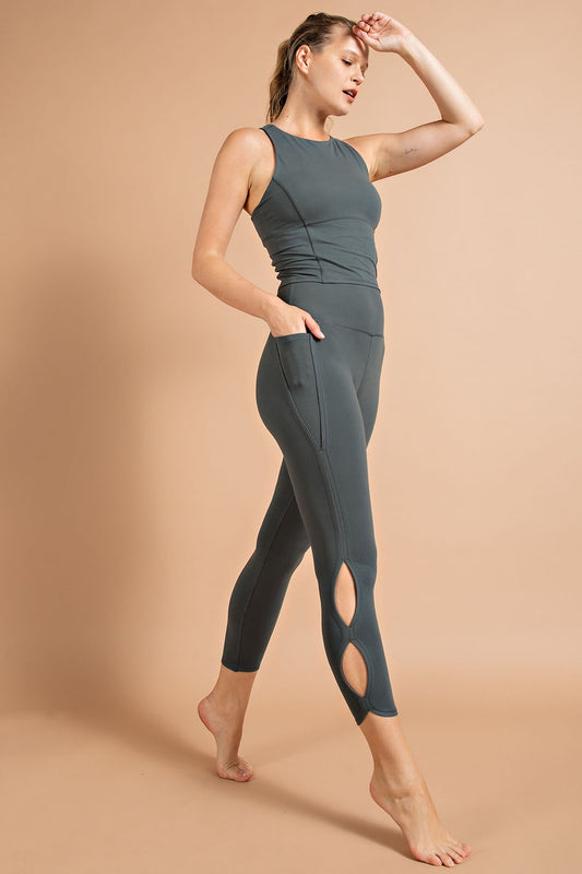 Smoked Spruce Butter Soft Cropped Yoga Leggings with Infinity Side Accent and Pockets