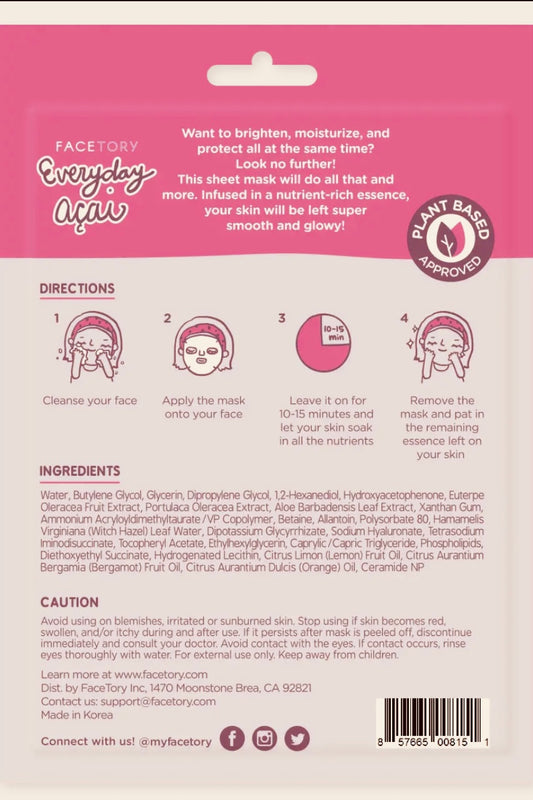 FaceTory Everyday Acai Rejuvenating Sheet Mask- Korean Beauty