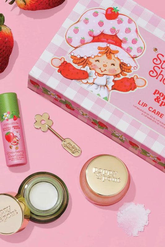 Poppy & Pout Strawberry Shortcake Premium Organic Lip Care Trio (Balm, Mask, & Scrub)