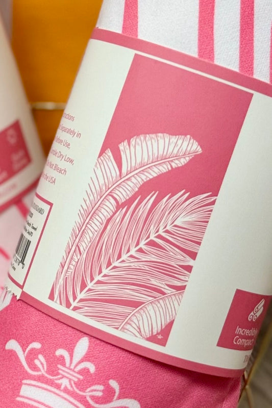Delmare Palm Microfiber Beach Towel in Pink and White