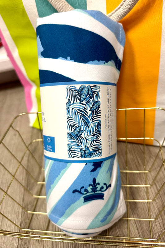 Tamarindo Palm Microfiber Beach Towel in Blue