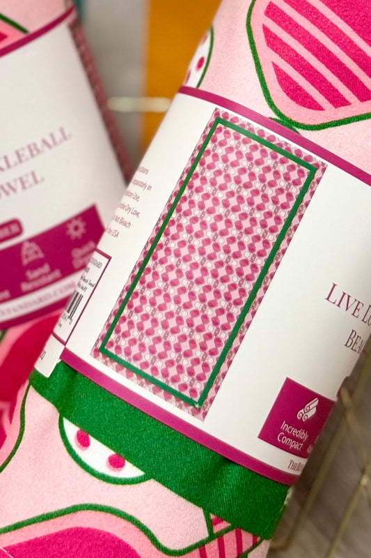 Pickleball Microfiber Beach Towel in Pink White and Green