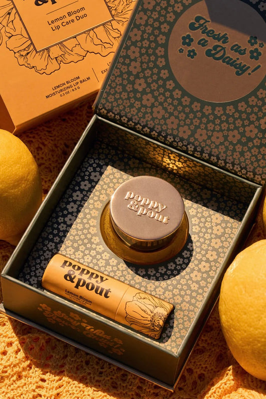 Poppy & Pout Lemon Bloom Premium Organic Lip Care Duo (Balm + Scrub)