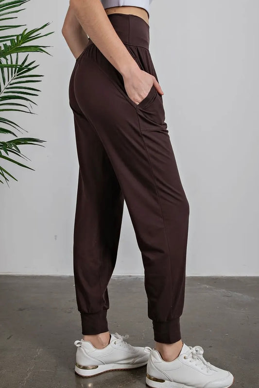 Espresso Brown Butter Soft High Waist Jogger Pants with Pockets