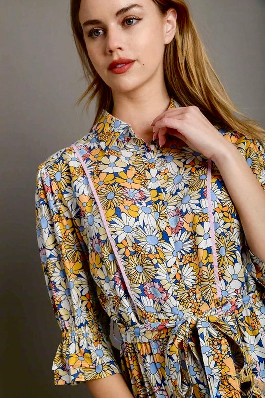 $24 SALE! Umgee Blue Floral Belted Short Dress REG. $47.99