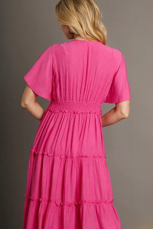 $27 SALE! Umgee Hot Pink Tiered Midi Dress REG. $54.99