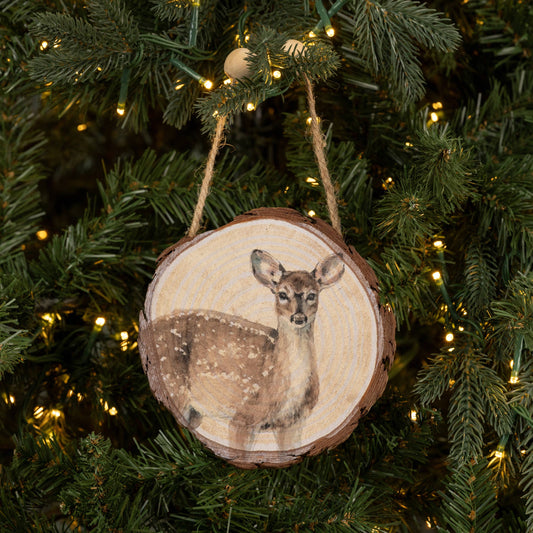 Deer on Wood Slice Ornament