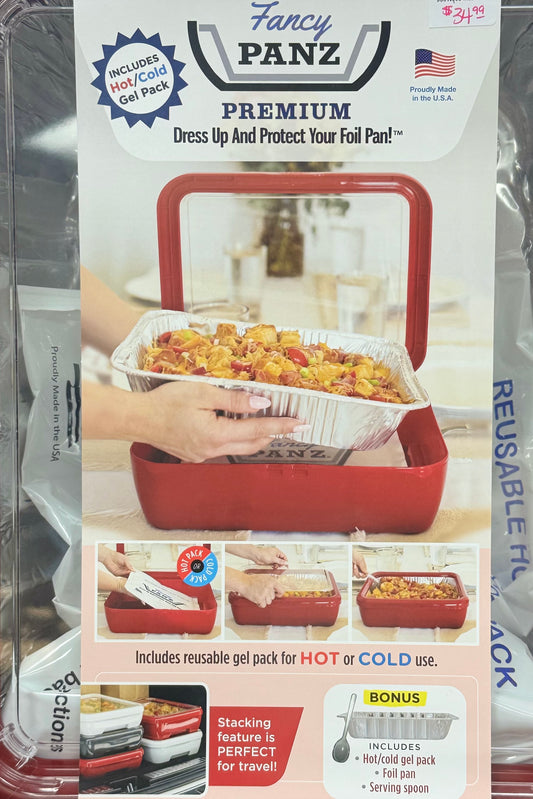 Fancy Panz Red Premium Set - Pan Frame with Lid, Hot/Cold Gel Pack, and Serving Spoon