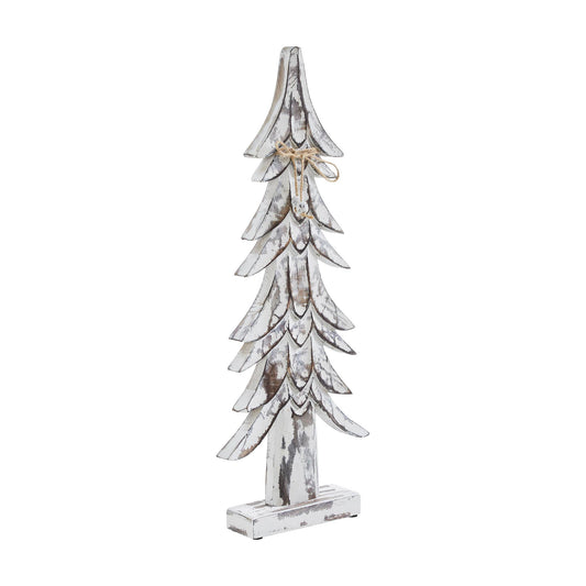 Two Toned White Natural Wooden Christmas Tree Figurine