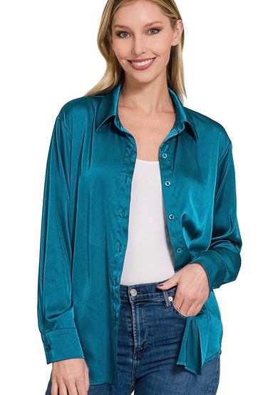 SALE! $15 Vintage Denim Plus Long Sleeve V Neck Top with Hi Low Hem