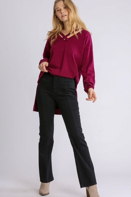 SALE! $18 Umgee Crisscross V Neck Oversized Sweater in Wine REG. $36.99