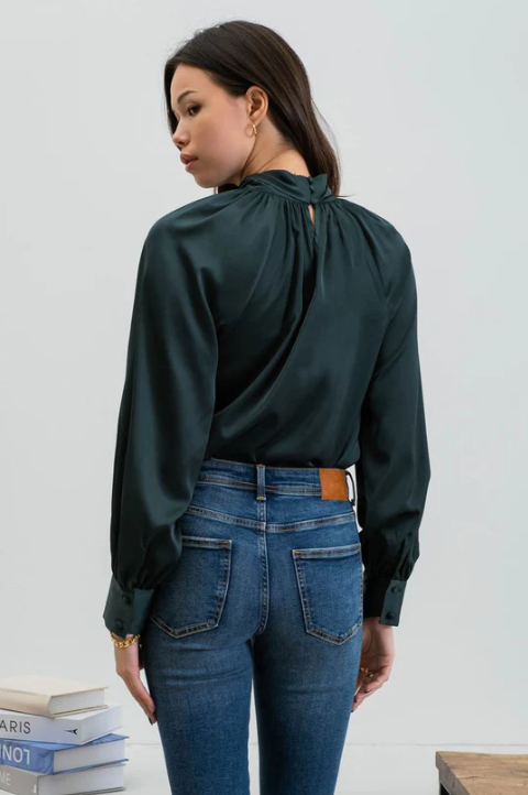 SALE! $15 Hunter Green Satin Blouse with Twisted Keyhole Neckline REG. $29.99