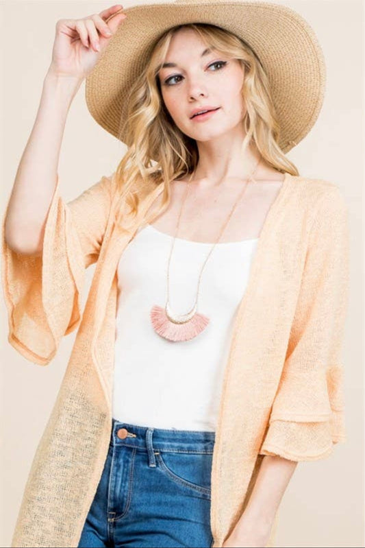 $10 SALE! Orange Longline Cardigan with Double Ruffle Sleeve