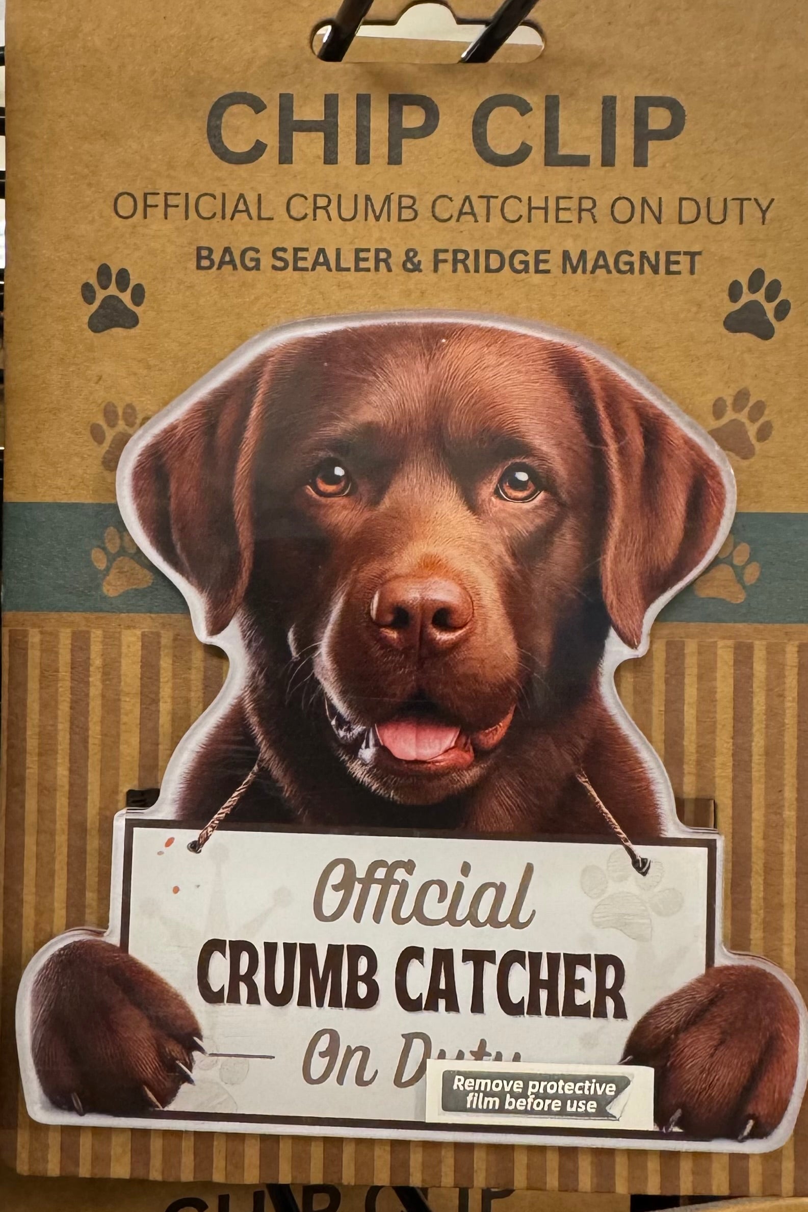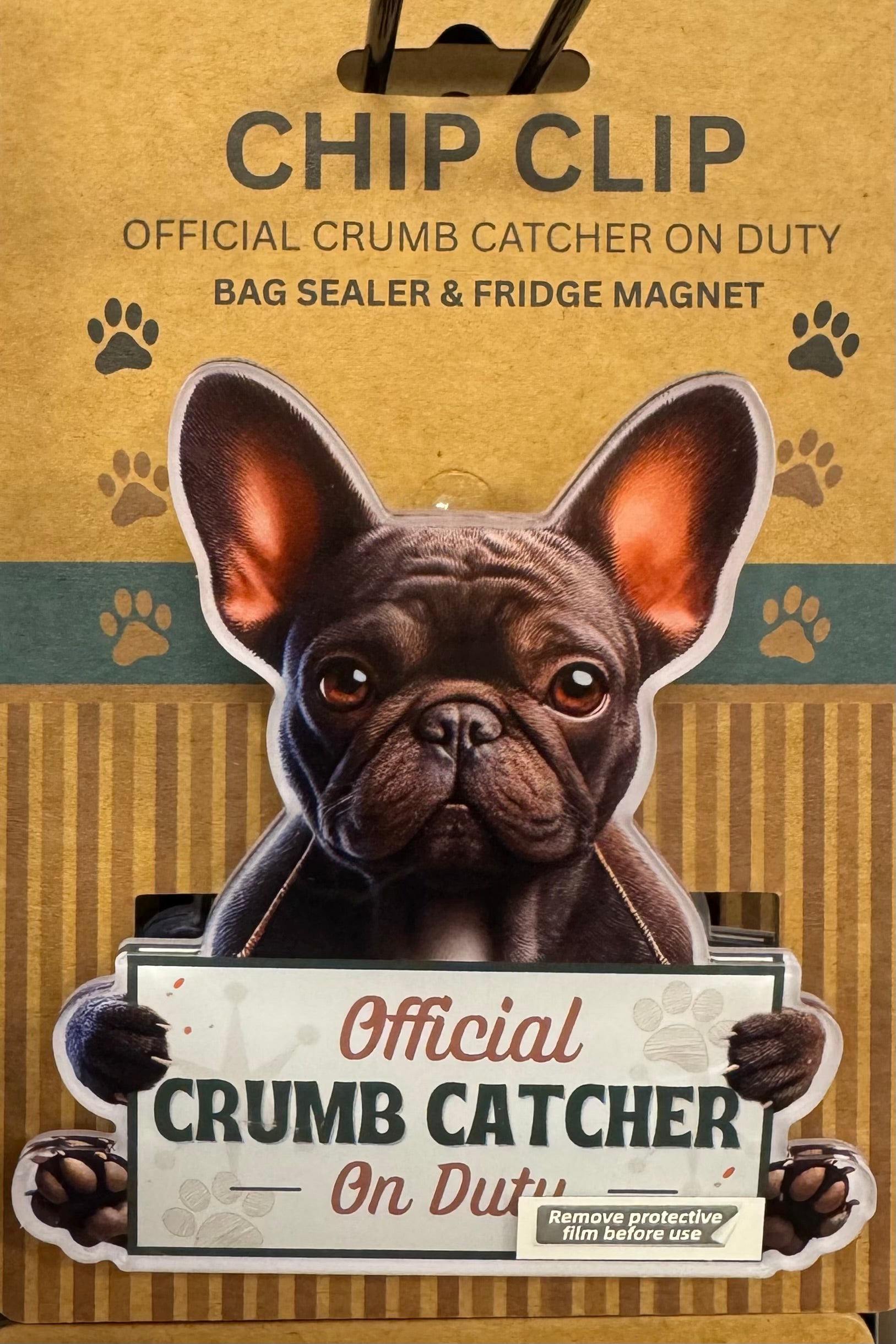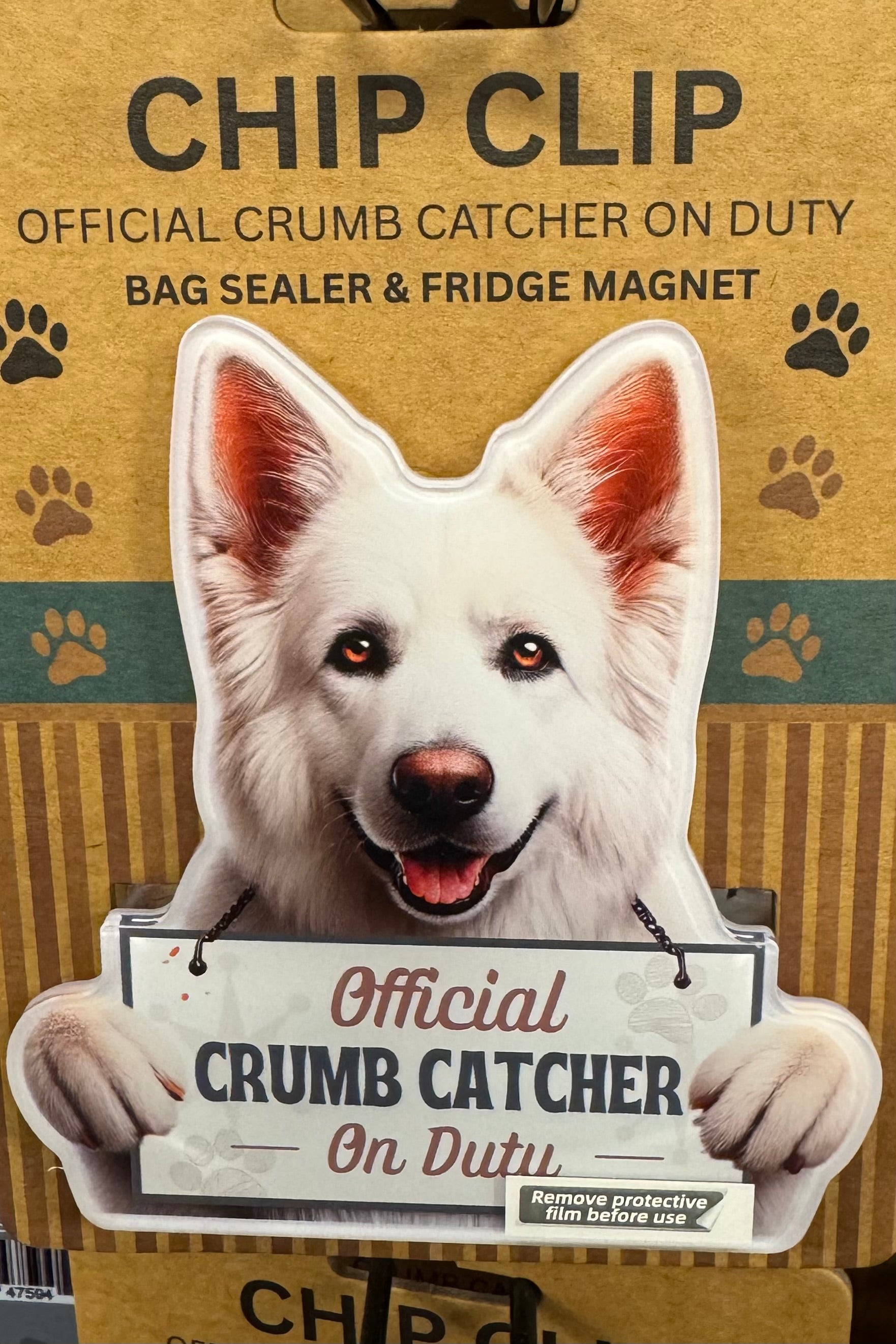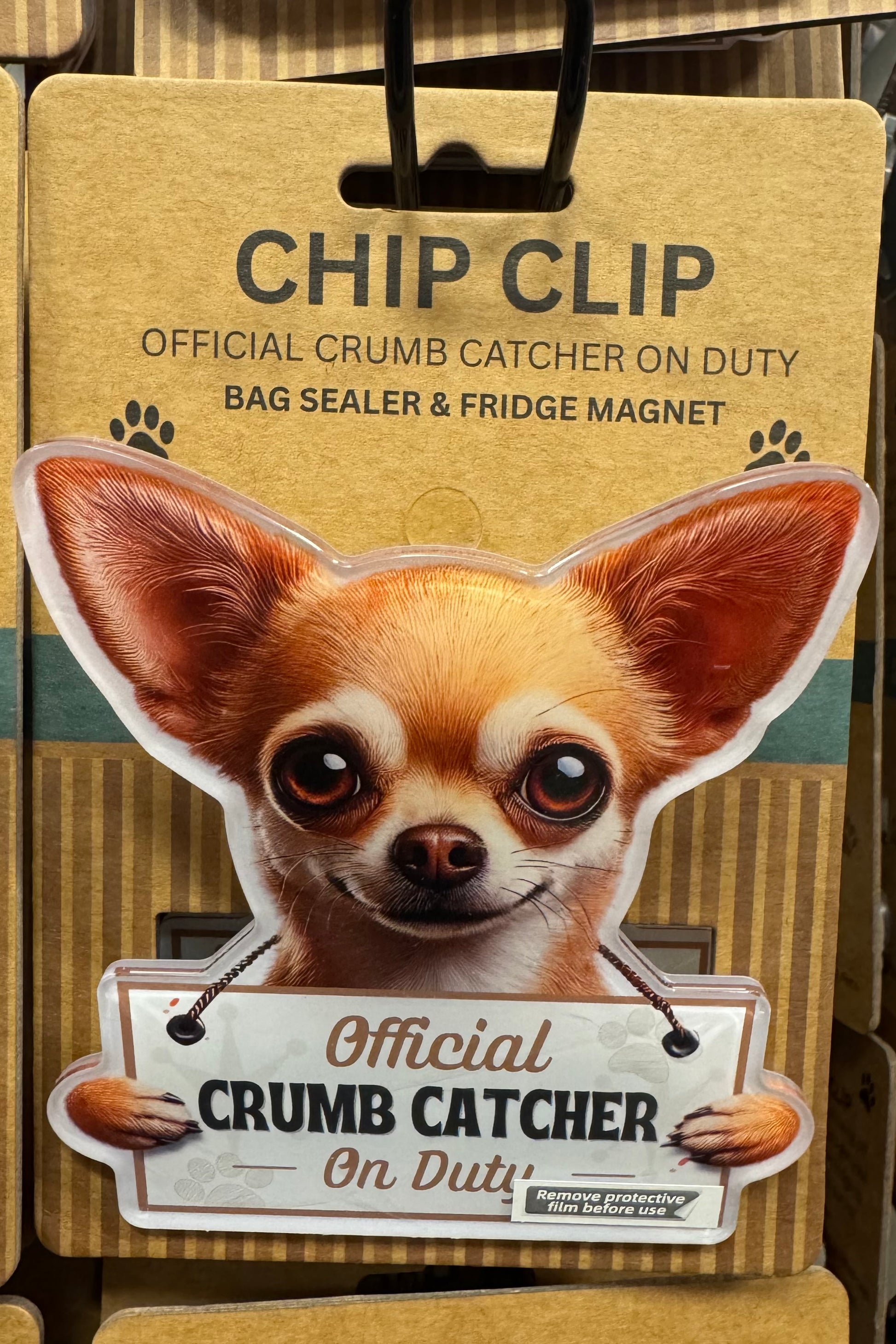 Official Crumb Catcher on Duty! Hold the snacks and the smiles with this magnetic chip clip featuring your favorite pups and kitties. Great for holding notes and pictures on the refrigerator too.