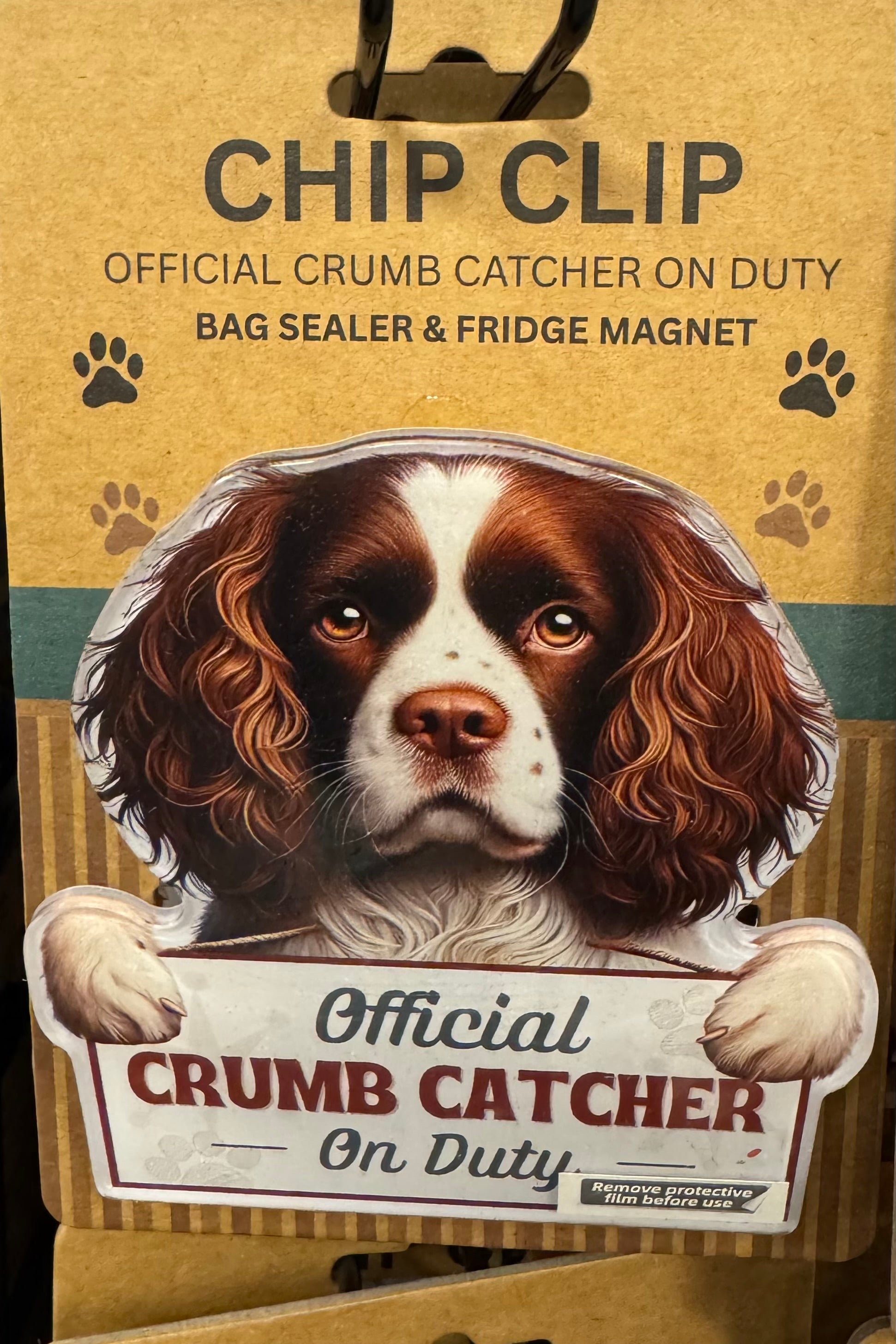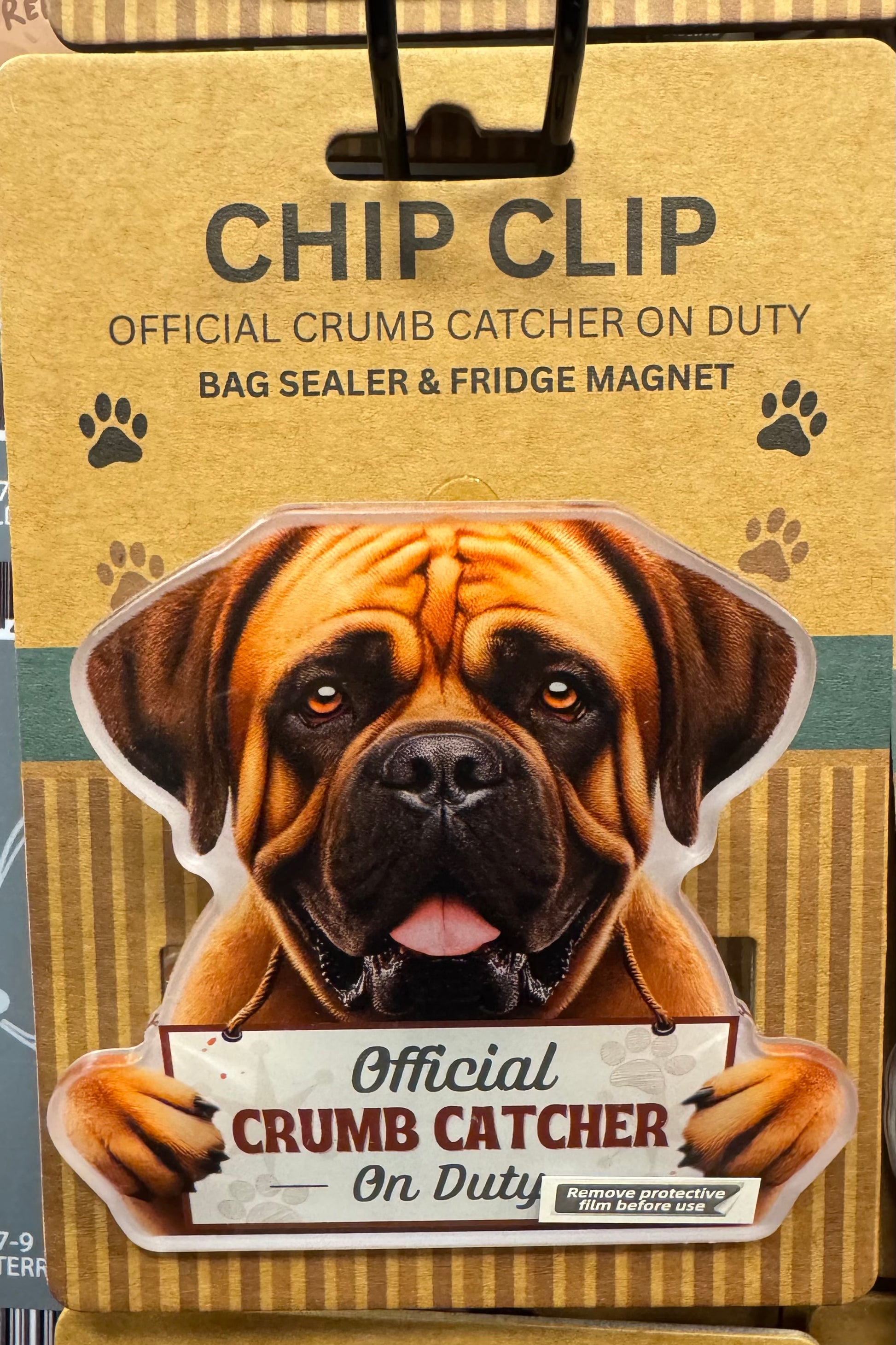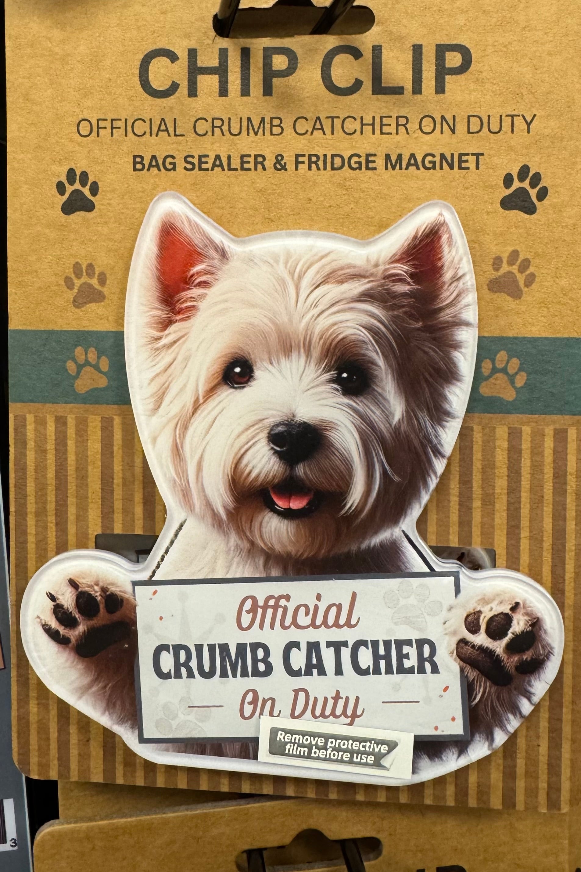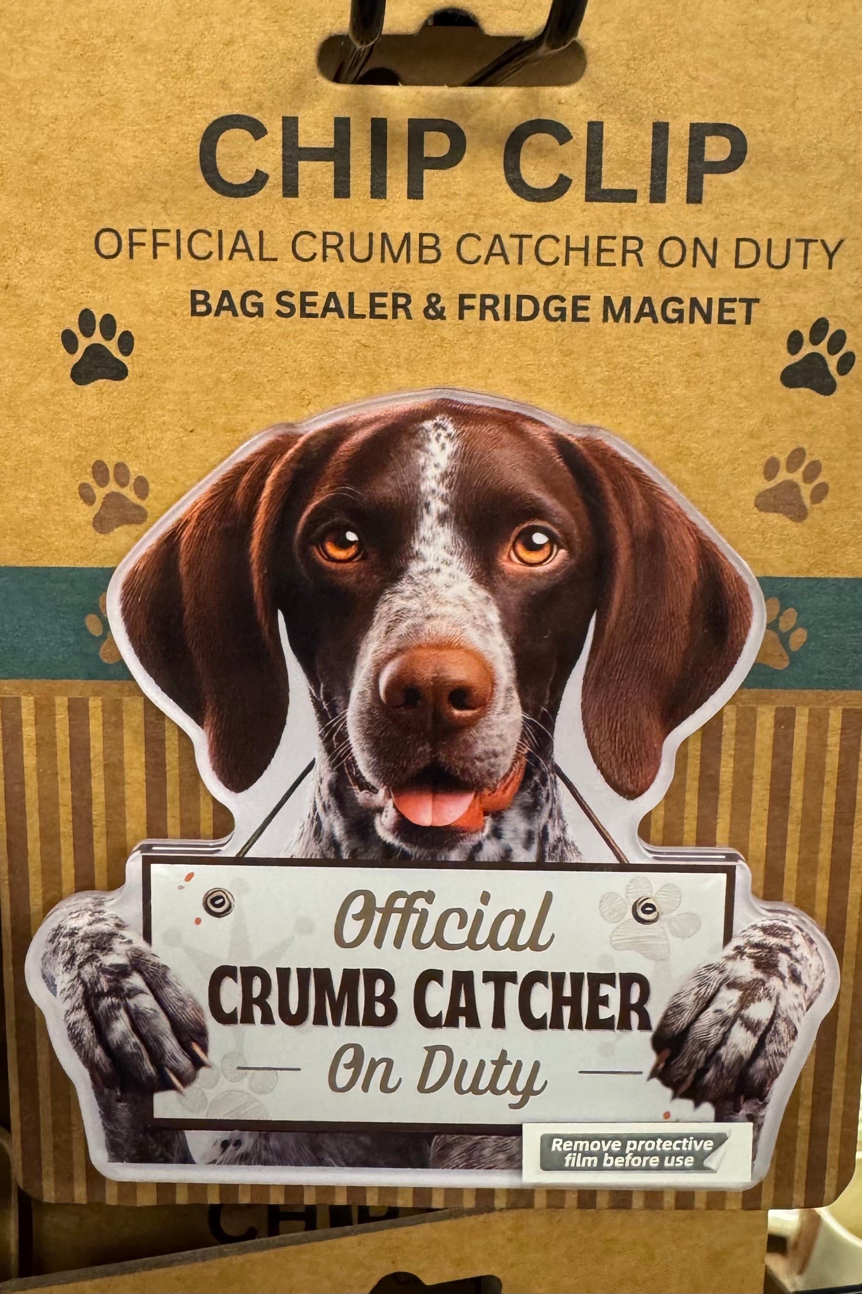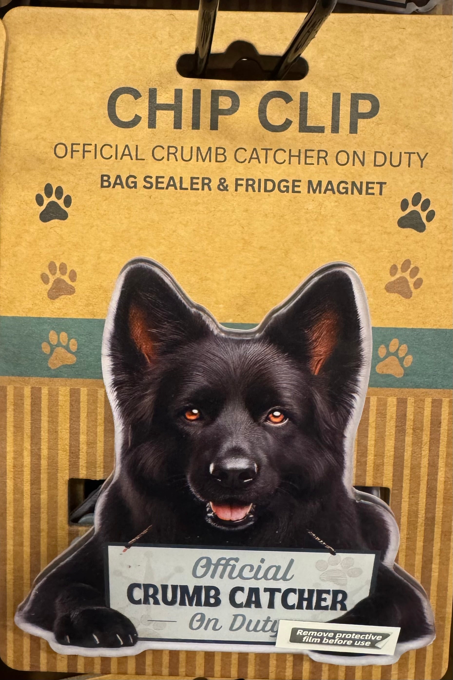 Official Crumb Catcher on Duty! Hold the snacks and the smiles with this magnetic chip clip featuring your favorite pups and kitties. Great for holding notes and pictures on the refrigerator too.