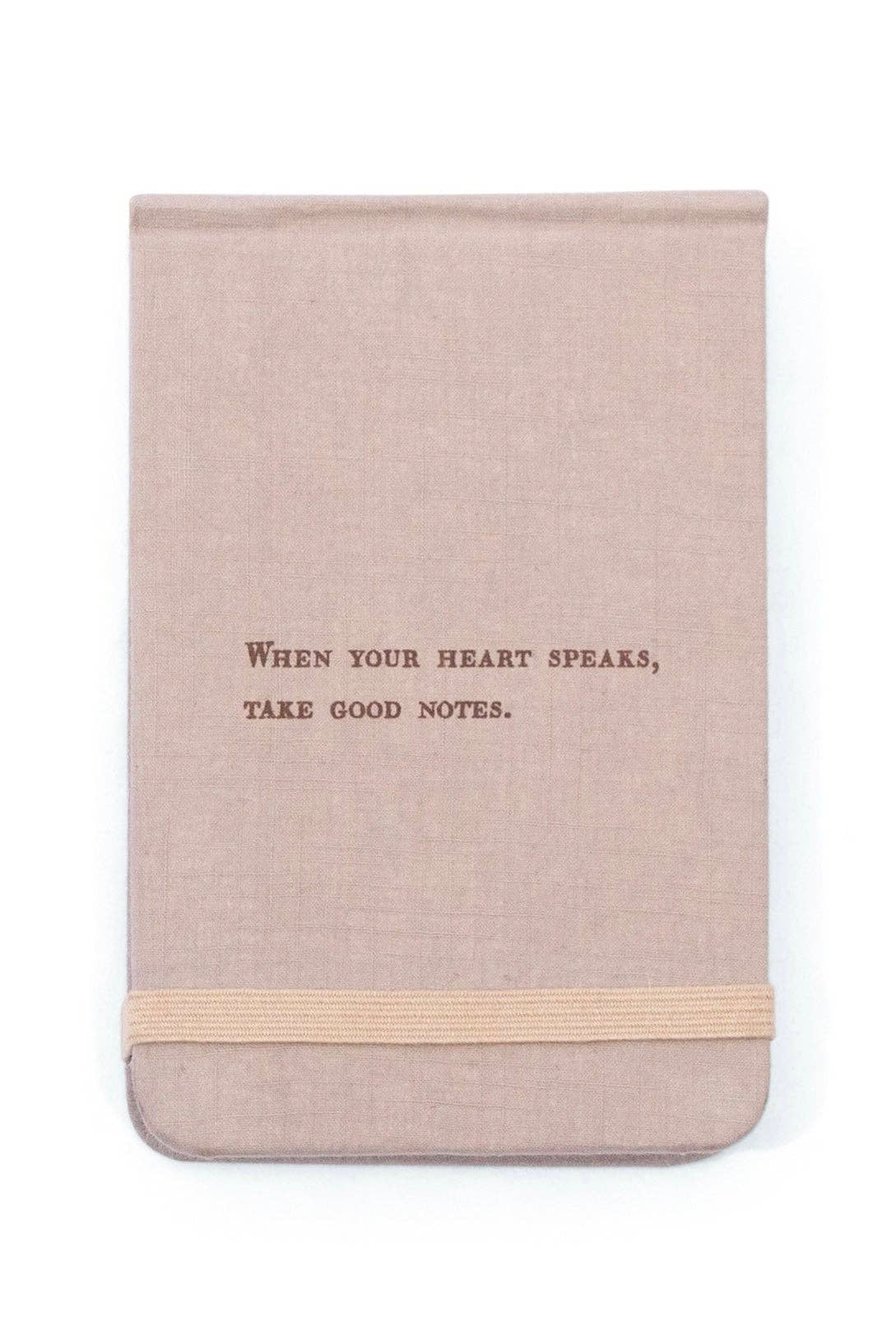 These fabric notebooks contain lined pages and have an elastic band at the bottom to keep everything in place!